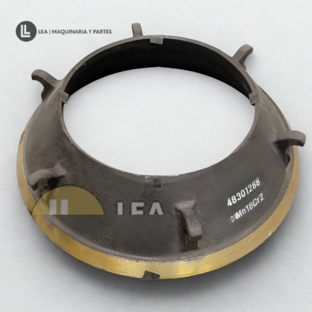 Bowl Liner | 4830-1101 de LEA Maquinaria y Partes está diseñado para aplicaciones de minería y agregados. Fabricado con materiales de alto desempeño, ofrece dureza superior, resistencia a la abrasión y desgaste uniforme. Se adapta a distintas marcas y modelos de trituradoras, asegurando compatibilidad y rendimiento constante en condiciones exigentes. Contamos con disponibilidad en México, entrega ágil y soporte técnico para ayudarte a seleccionar la pieza correcta y mantener tu planta de trituración en operación continua.